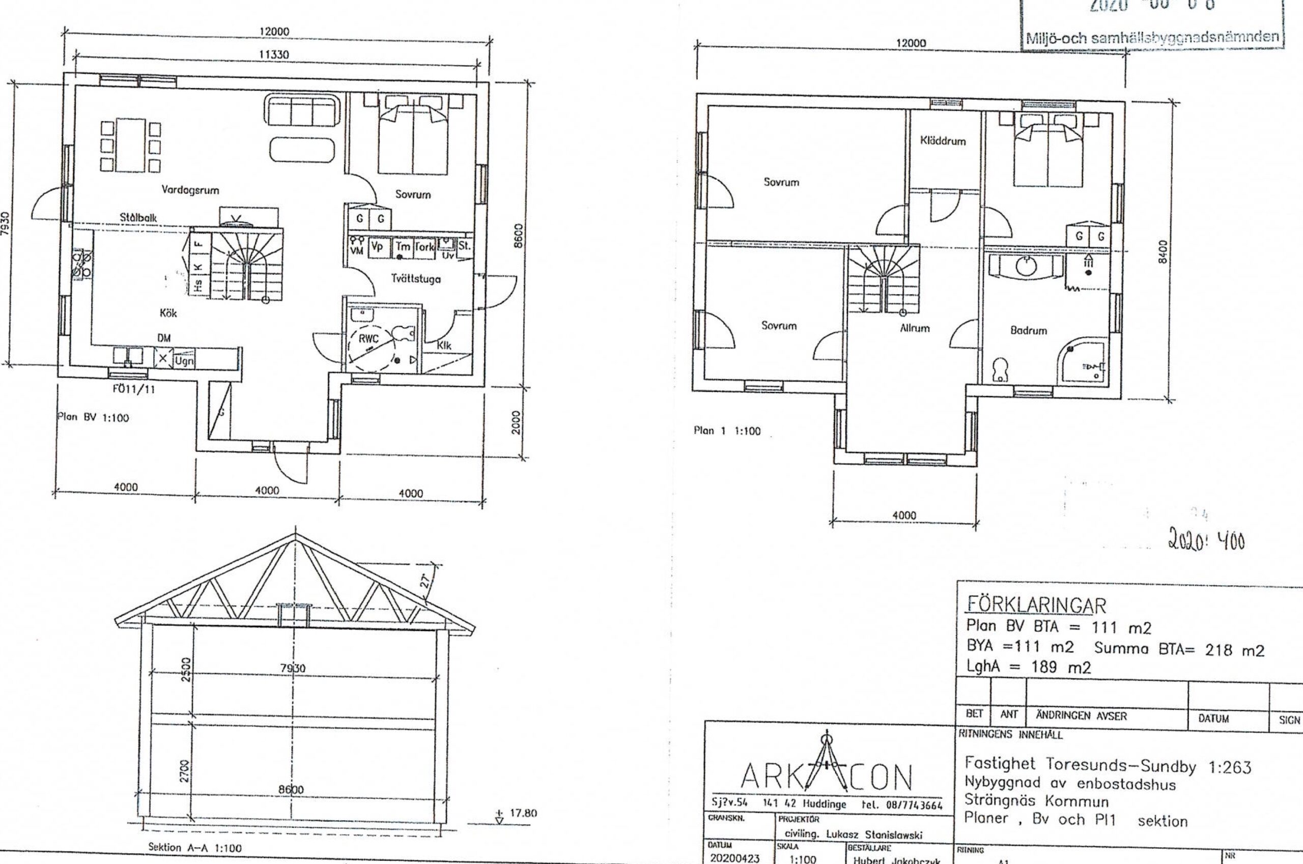Rymligt hus om 218 kvm i två plan med ett sovrum på entréplan och tre sovrum, allrum samt klädrum på övervåningen.